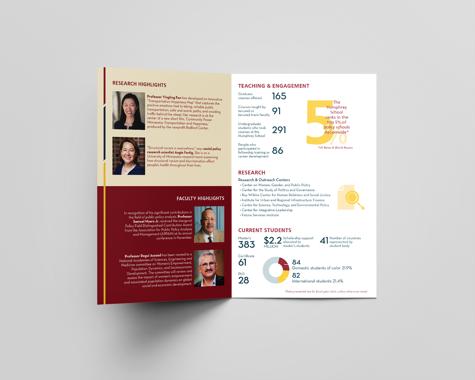 BRAND MANAGEMENT, PRINT AND DIGITAL MARKETING | As the Creative Multimedia Manager of the Humphrey School of Public Affairs, one of my first tasks was to refresh our brand guidelines. I enforce these guidelines across the college, create print and digital marketing materials, and manage our social media accounts.